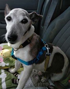 Jack came into rescue in December on a very cold morning. He was found roaming the streets in Broken Arrow very thin, freezing and confused. A caring person picked him up and took him to a local vet hospital where they addressed his medical needs. We picked Jack up and he joined our rescue as a sanctuary dog. We estimated Jack to be approximately 13 years old and had congestive heart failure. Until the end of his life, he was warm, loved and never hungry again. Jack passed quietly in his sleep and is now on the other side of the Rainbow Bridge running and jumping just how a Jack Russell should be. He crossed the bridge January 28, 2018.