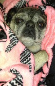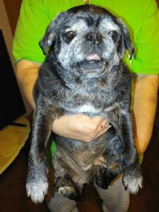Duke an 11 yr old male Pug was in our rescue for only 48 hours. He came to us from the Tulsa Animal Shelter as an owner surrender. During our transport from the shelter to our vet, Duke didn't have the strength to lift his head and quietly layed in my arms. Duke was very sick and weak and had been so for a while. Duke died 2 days later and we are searching for answers on why he died. One thing we do know is that in his final hours, Duke knew that we saved him and he was loved. Rest in peace, our sweet and beautiful Duke.