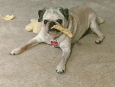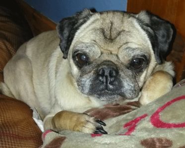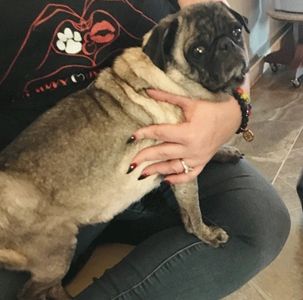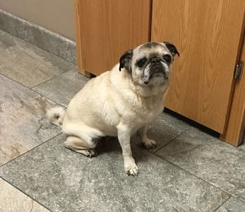 Pug Pug came into rescue last year as a owner surrender. She was 8 years old and crossed the bridge February 23, 2018 when her trachea collapsed.