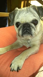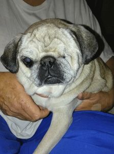 Missy was a 18 year old female pug who came into rescue as an owner surrender. Her human went into a nursing home and the children asked that we take her. She crossed the bridge May 25, 2019 when her body finally gave out.